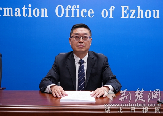 鄂州市科技局党组成员、副局长周平回答记者提问。通讯员 供图