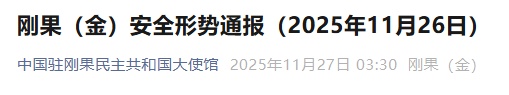 中国驻刚果民主共和国大使馆11月27日发布刚果(金)安全形势通报:
