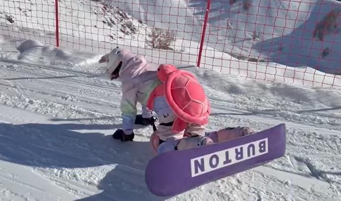 虽然视频只有11秒,但全妹态度坦荡,放出自己在雪道上摔跤又摔跤的场面。