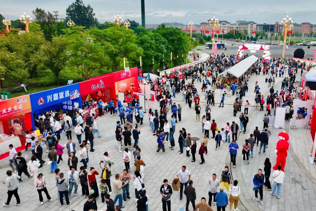 “川超”乐山“味道非常队”主场馆外,“嘉州美市”人头攒动。(受访者供图)