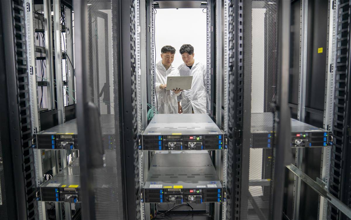 武汉超擎数智科技有限公司实验室,工程师正在测试服务器产品。(湖北日报全媒记者 魏铼 摄)