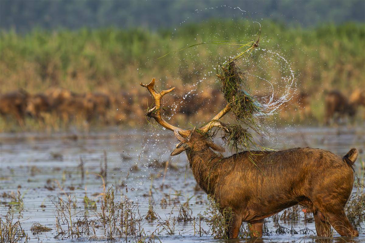 石首麋鹿国家级自然保护区“湿地精灵”麋鹿 雷刚 摄
