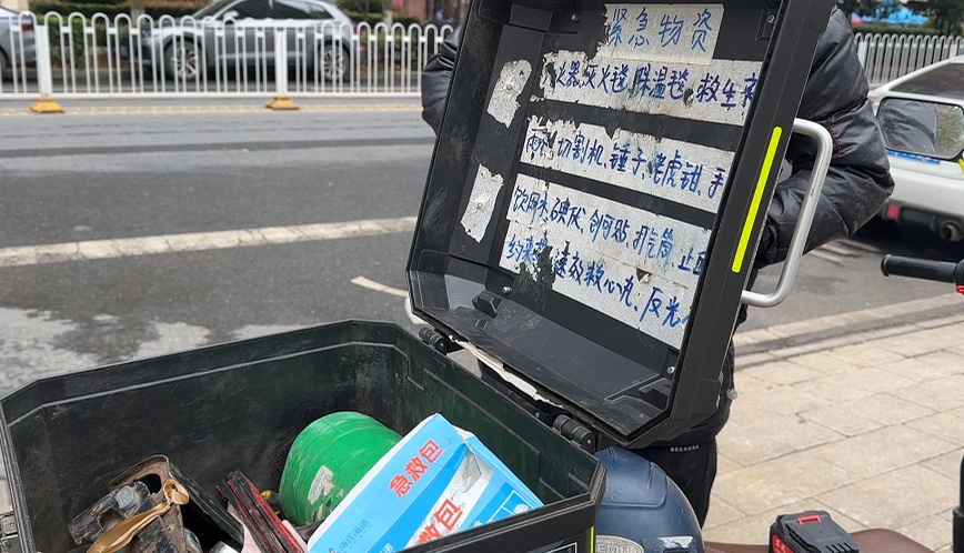 切割机等工具和绷带、碘伏等急救物资