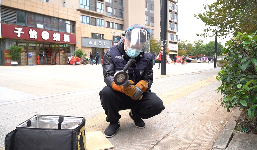 送餐路上默默清除路面钉子