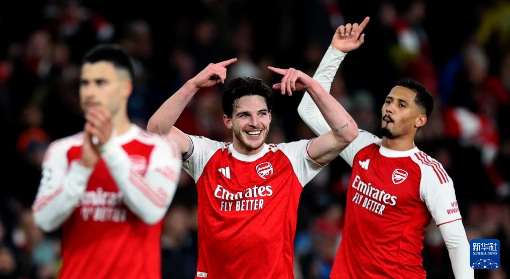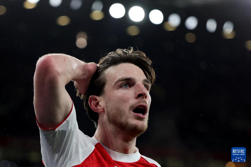 11月26日,阿森纳队球员赖斯(中)赛后庆祝胜利。