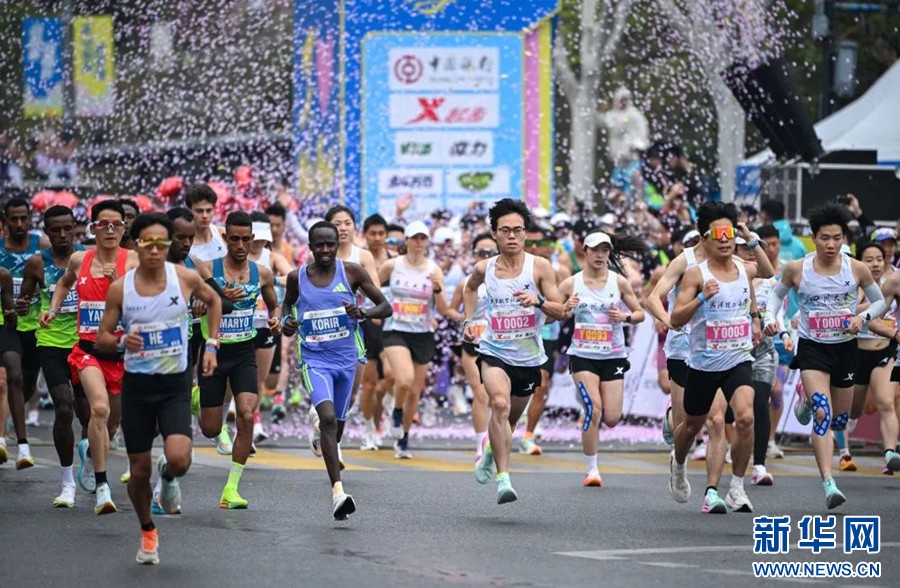 3月23日,参赛选手在2025武汉马拉松比赛中出发。新华社记者 杜子璇 摄