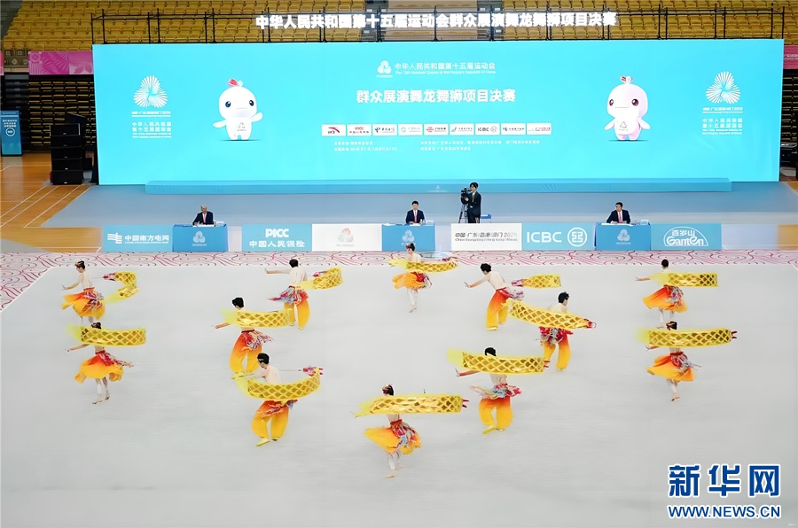 图为全运会赛场湖北代表队进行群众展演舞龙舞狮项目决赛。(湖北省体育局供图)新华网发