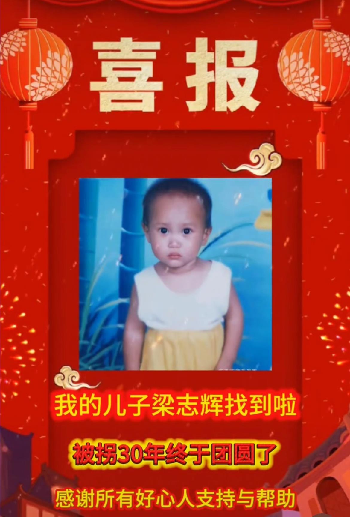 10月28日,梁三寿正式官宣喜讯,失踪三十载的儿子梁志辉被找到,这场漫长的寻亲之路终于迎来圆满结局。
