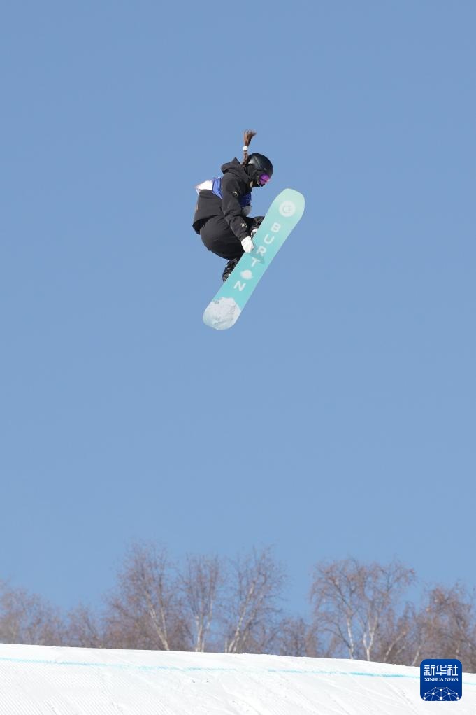 11月27日,中国选手张小楠在女子单板滑雪比赛中抓板。最终,她无缘决赛。