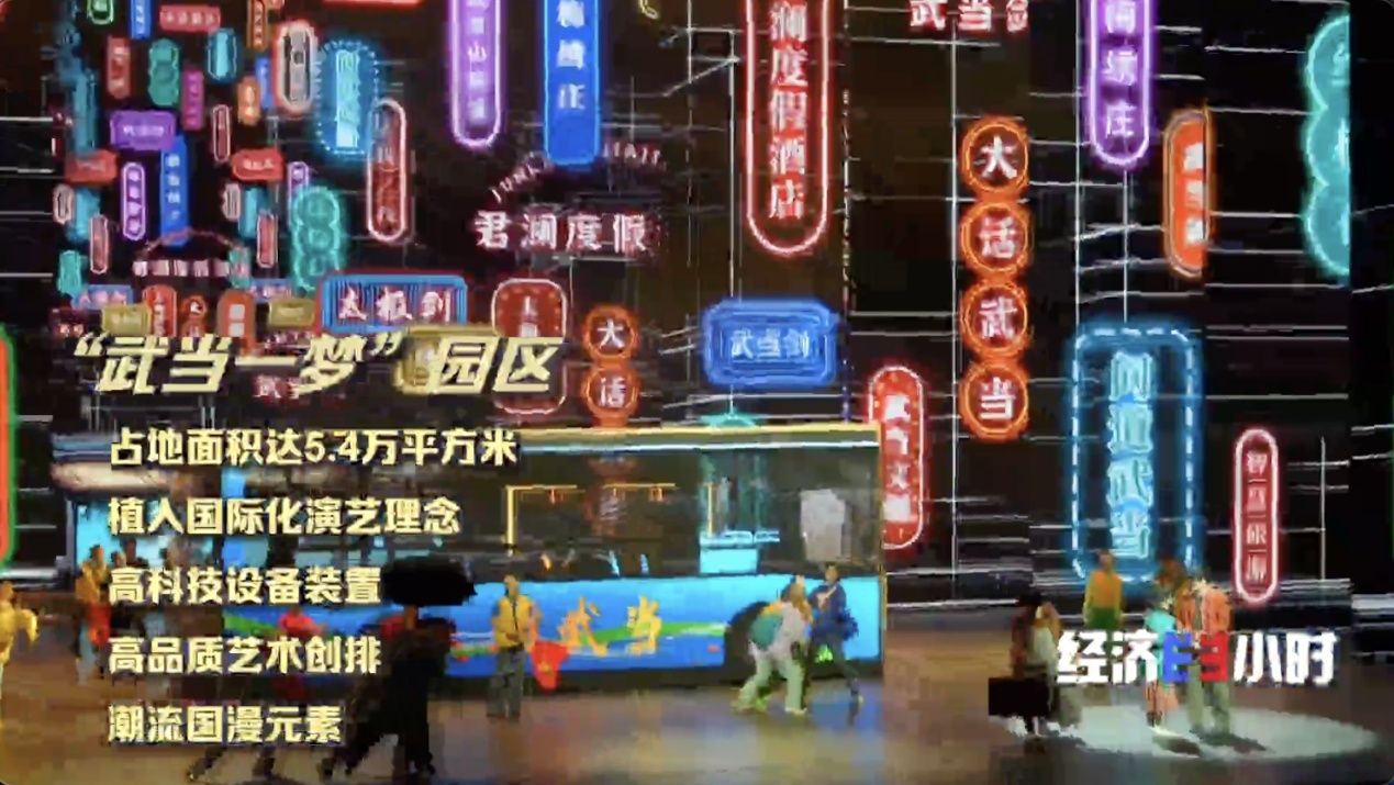 演艺节目《大话武当》,用穿越互动的形式演绎武侠故事,也是武当文化的新业态。这个节目位于占地面积达5.4万平方米的“武当一梦”园区,通过植入国际化演艺理念、高科技设备装置、高品质艺术创排和潮流国漫元素,为游客打造了沉浸式的文旅体验。