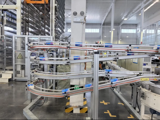 在维达护理用品(中国)有限公司的立体仓库内,这套智能系统正高效运转。从包装生产线下来的纸巾,由机械臂直接抬升传输进入仓库,经智能机械手自动码垛、裹膜,随后被堆垛机稳稳送入数十米高的“专属床位”。