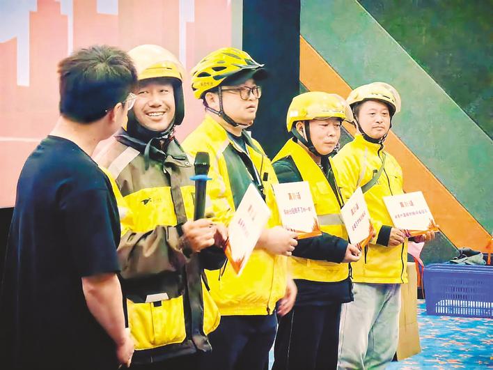 10月30日,武汉市东西湖区金银湖街道花城社区,快递小哥、外卖骑手与党员代表进行趣味互动故事分享。 (湖北日报通讯员 何嫚 摄)