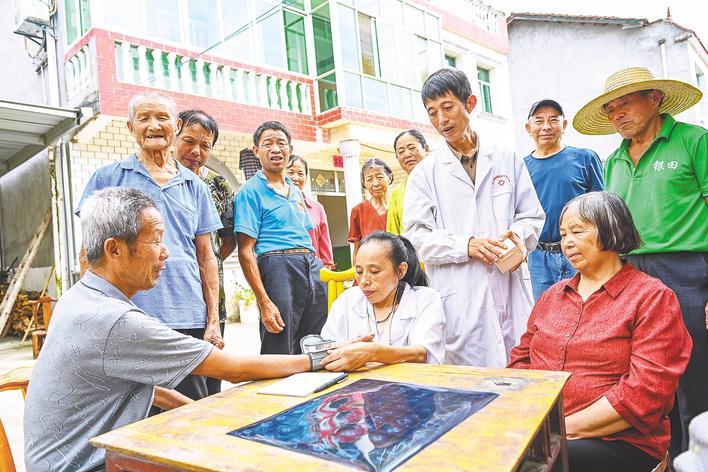 8月23日,英山县杨柳湾镇高家坪村,乡村医生陈亚上门为居民提供免费健康检查。(视界网 王江 摄)