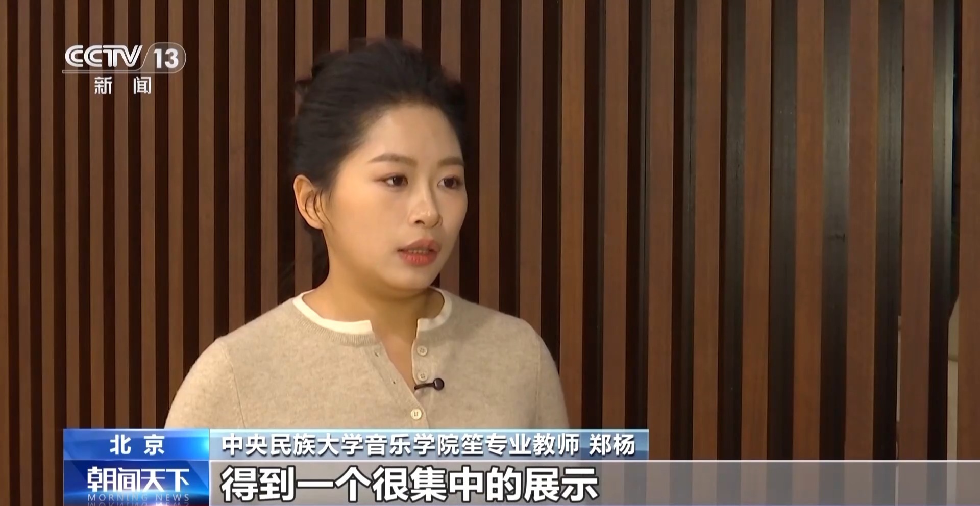 中央民族大学音乐学院笙专业教师 郑杨:这一次的展演就是聚焦于中国的民族吹管乐,包括现在作品发展的形态,行业的最前沿的状况,都可以在排练和演出当中得到展示,也同样是我们学习的一个很好的平台和机会。