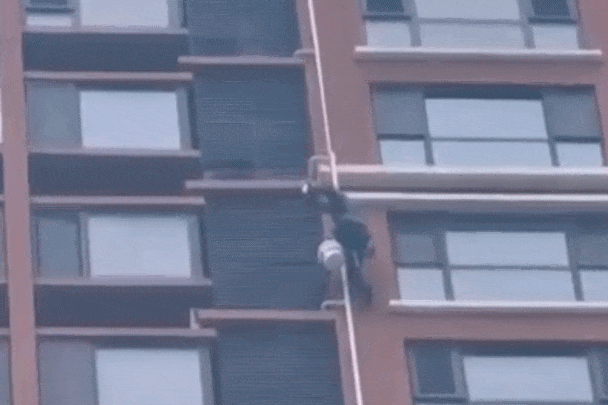 所幸楼下群众及时躲避,未造成人员伤亡。