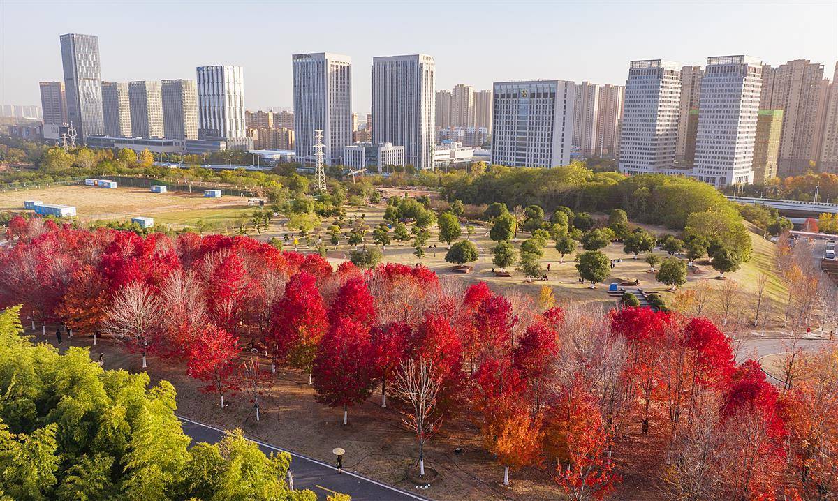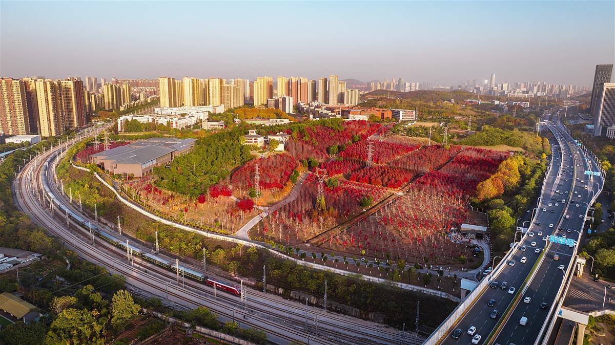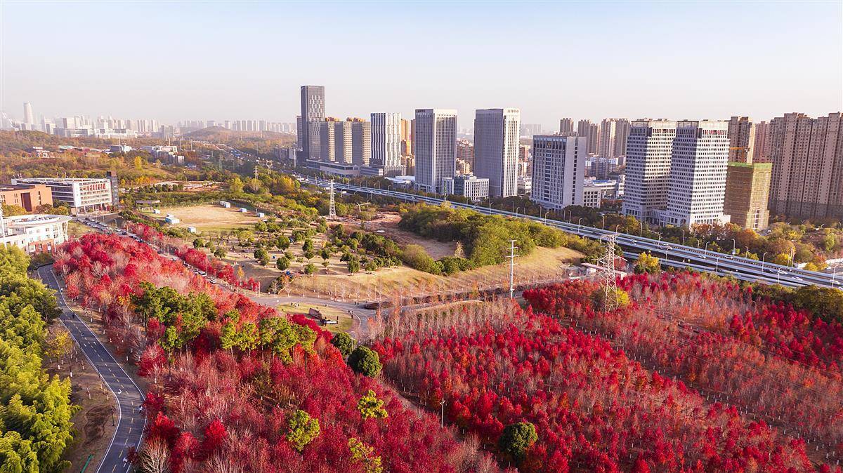 文华学院的枫叶红透了,每天引来许多师生和市民拍照打卡。