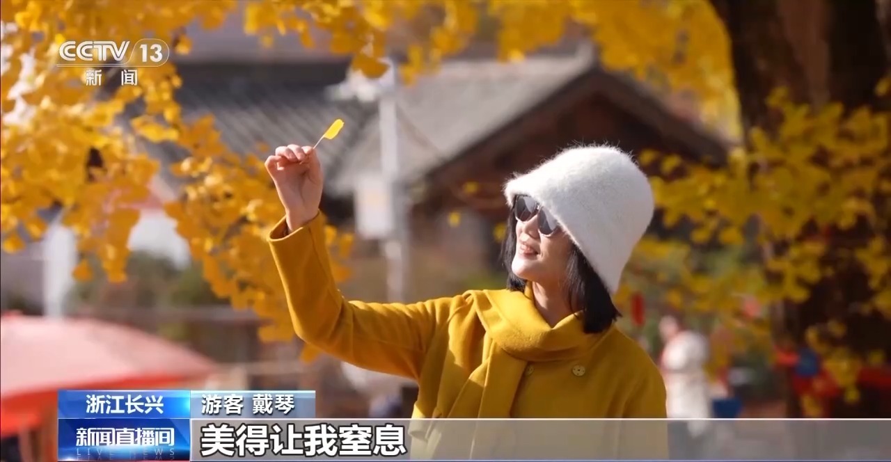 总台记者 濮佳怡:这棵1500岁的“银杏皇后”现在正是最美的时候。在这里,随手一拍都是大片,上周末这里涌入游客超10万人次。