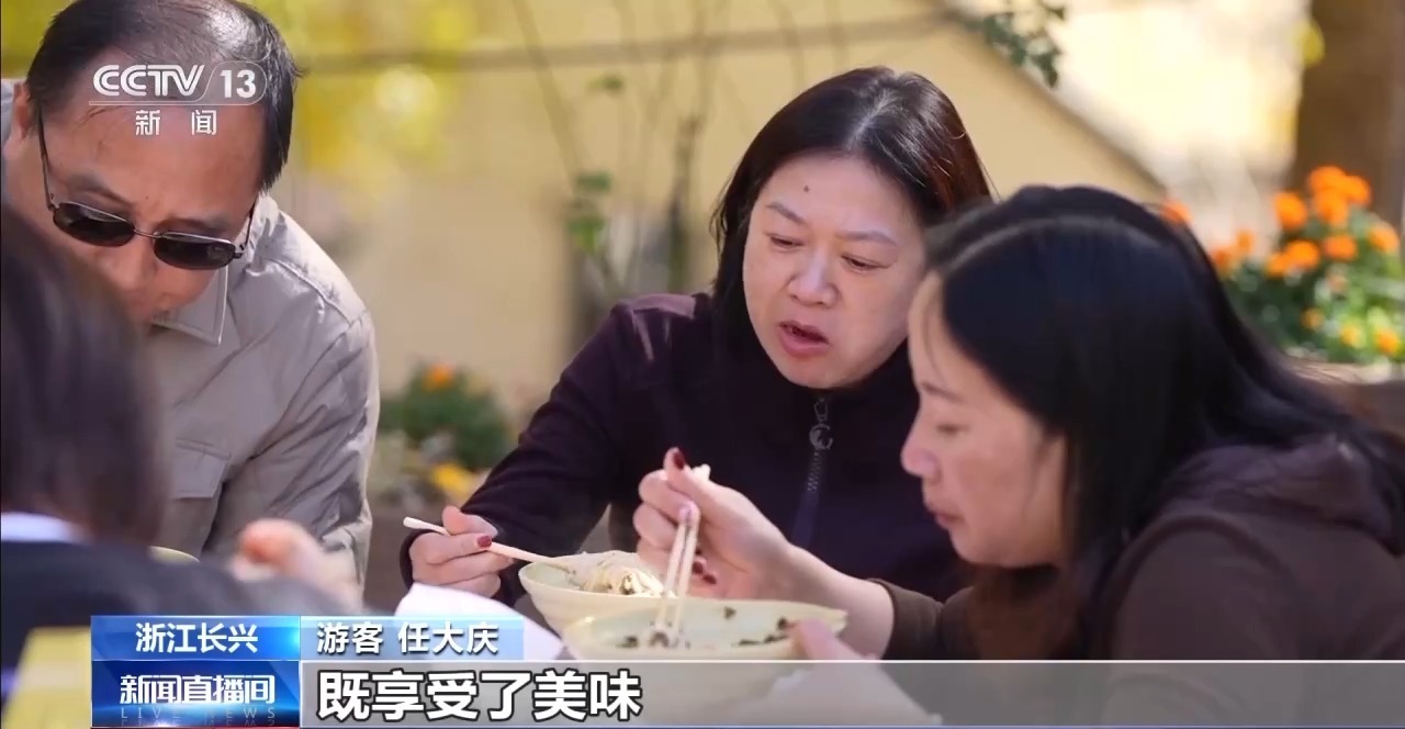 游客 任大庆:我们坐在这个银杏树下,吃着这个银杏制作出来的面条,既享受了美味,又感受了美好的环境,不虚此行。