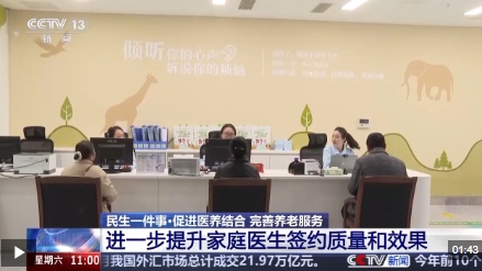 国家卫生健康委、民政部等五部门近日,印发通知,决定开展为期三年的医养结合促进行动。未来三年,我国将大力发展居家和社区医养结合服务,提升家庭医生签约的质量和效果,到2027年底,失能、高龄、残疾等特殊困难老年人家庭医生签约覆盖率不低于80%。我们首先到先行试点地区去看看。