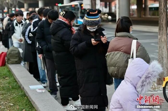 资料图:考点外,考生抓紧时间复习。图源:中国新闻网