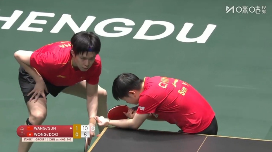 11月30日,2025年成都混合团体世界杯揭幕战,中国队孙颖莎 、王楚钦搭档混3-0双战胜中国香港队黄镇廷、杜凯琹组合,取得开门红。比分:12-10、11-8、12-10祝贺。