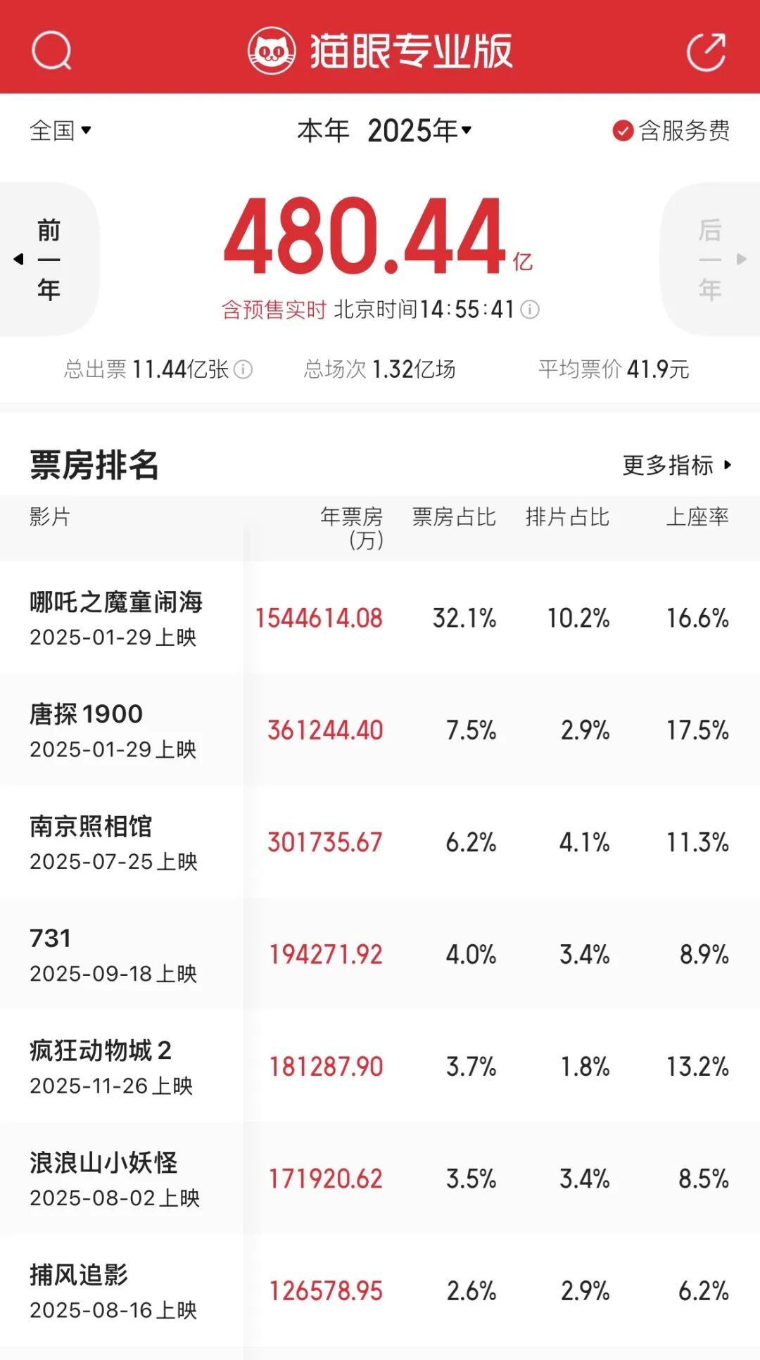 11月30日,据网络平台数据,2025年度电影总票房(含预售)突破480亿。11月28日,贺岁档(11月28日至12月31日)正式开启,已有超50部影片定档。