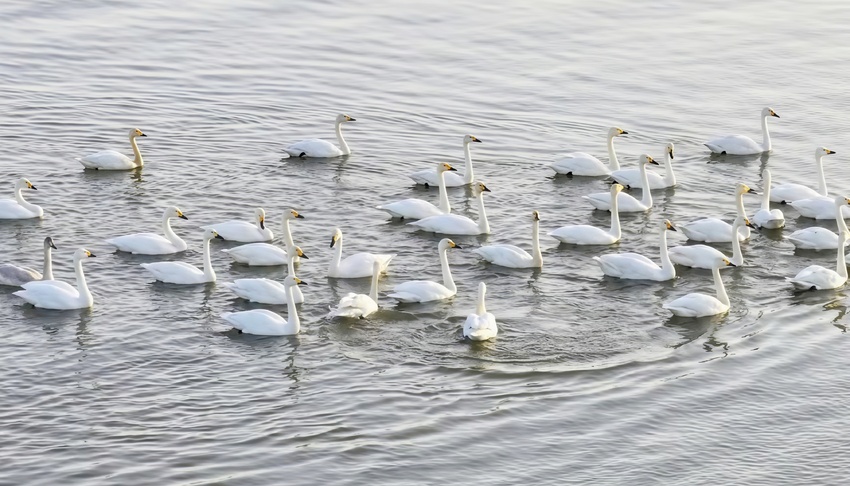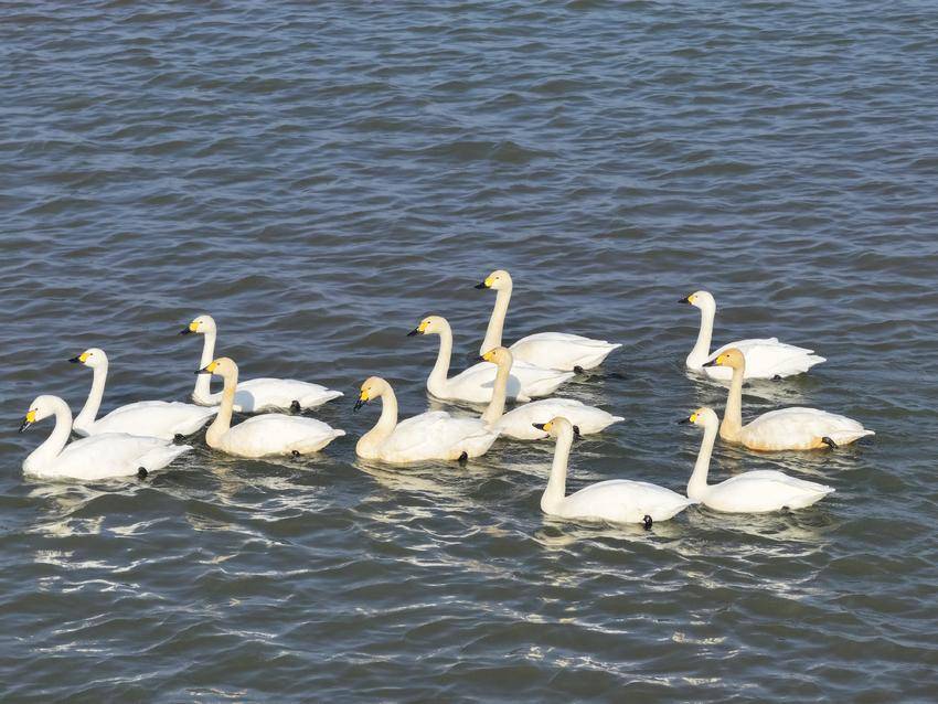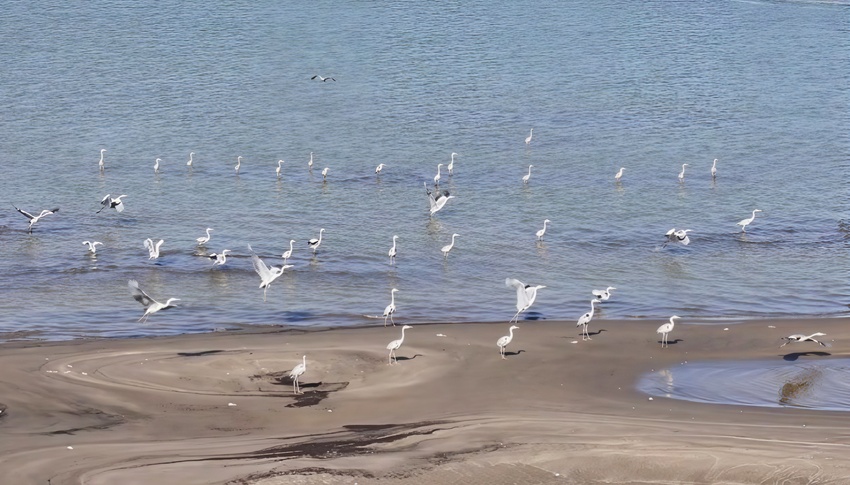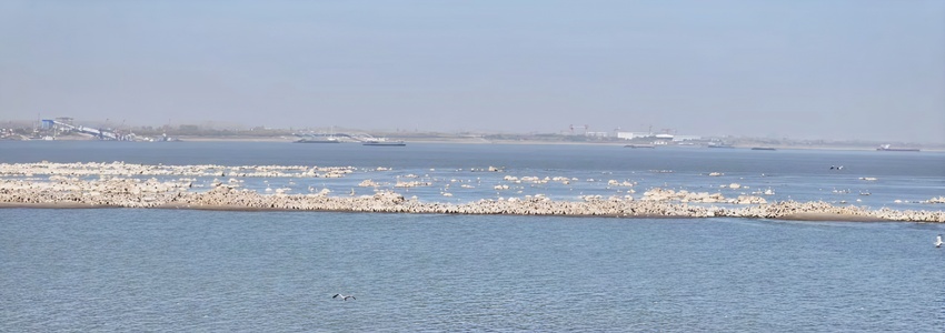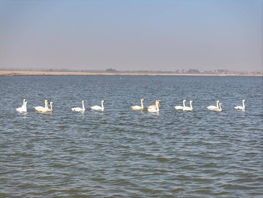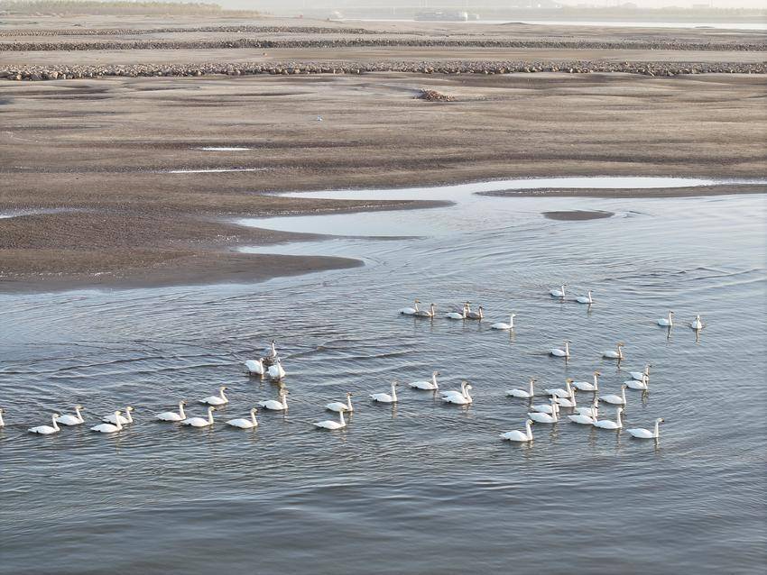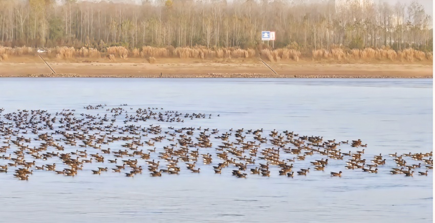 11月28日,鄂州临江段超凡码头附近出现大批大天鹅。十年禁渔让这一段长江江滩成为大批鸟类嬉戏的天堂。(湖北日报客户端通讯员 杨文明 摄)