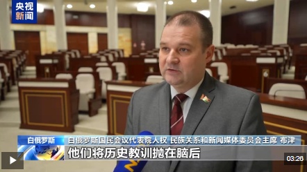 白俄罗斯国民会议代表院人权、民族关系和新闻媒体委员会主席 布津:日本现任首相代表着一些日本人,他们将历史教训抛在脑后,对日本在历史上所犯下的罪行没有负罪感。长期以来,日本都坚持“无核三原则”,其中包括不制造核武器、不引进核武器,如今就连这一根本原则也开始被重新审视,日本正在遗忘历史教训。在我看来,日本似乎再次步入了其历史上的军国主义阶段。在当前形势下,国际社会应团结一致,团结就是力量,各方需要在所有可能的国际平台上及时谴责任何纳粹主义、军国主义苗头。我们应该携手合作,绝不能放任法西斯主义与军国主义死灰复燃。