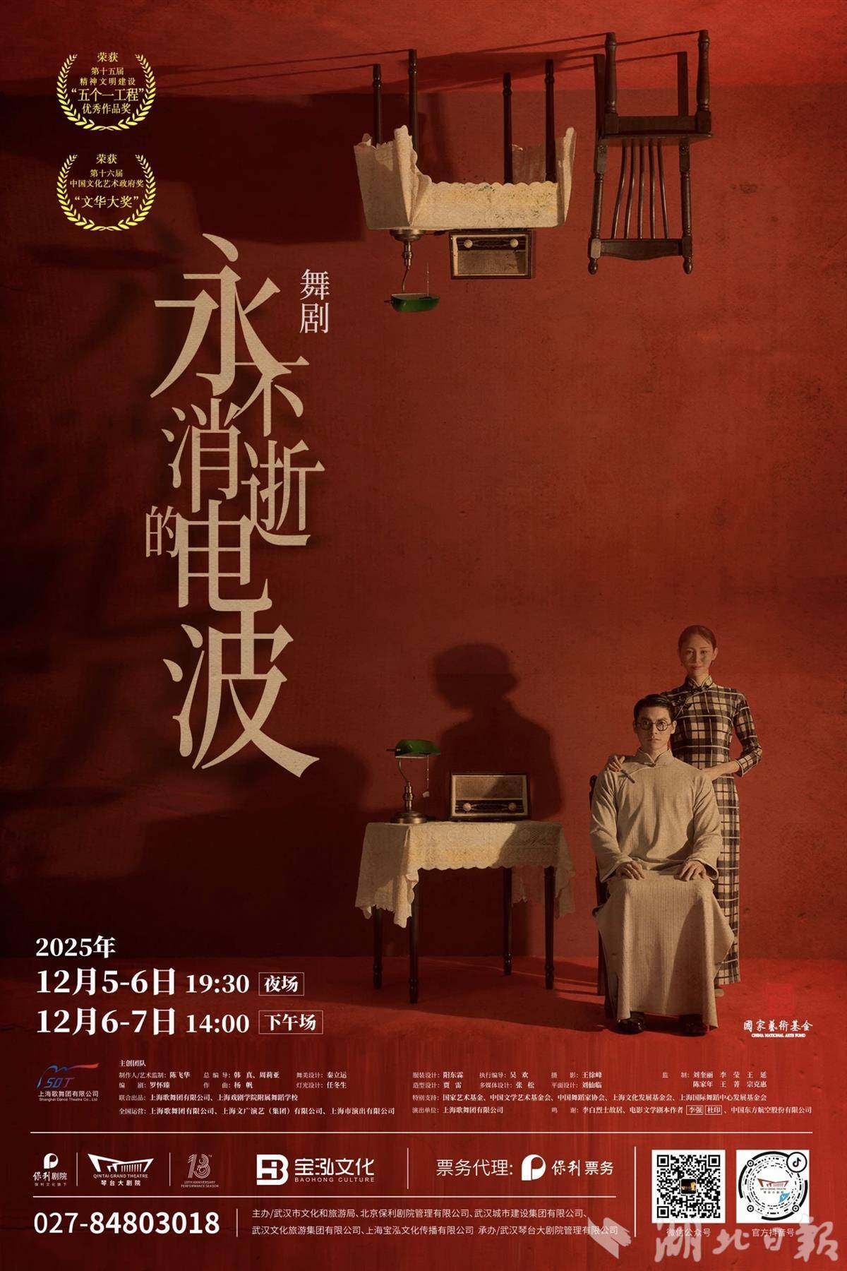 湖北日报讯(记者农新瑜、通讯员周媛媛)从武汉琴台大剧院获悉,被誉为“国内舞剧天花板”、由上海歌舞团演出的舞剧精品《永不消逝的电波》,将于12月5日至7日再度登陆琴台大剧院,作为第九届琴台艺术节重磅剧目连演4场。