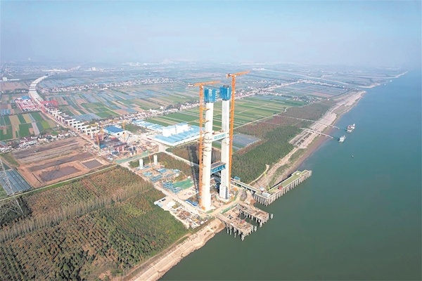 李埠长江大桥北岸主塔突破200米 通讯员供图