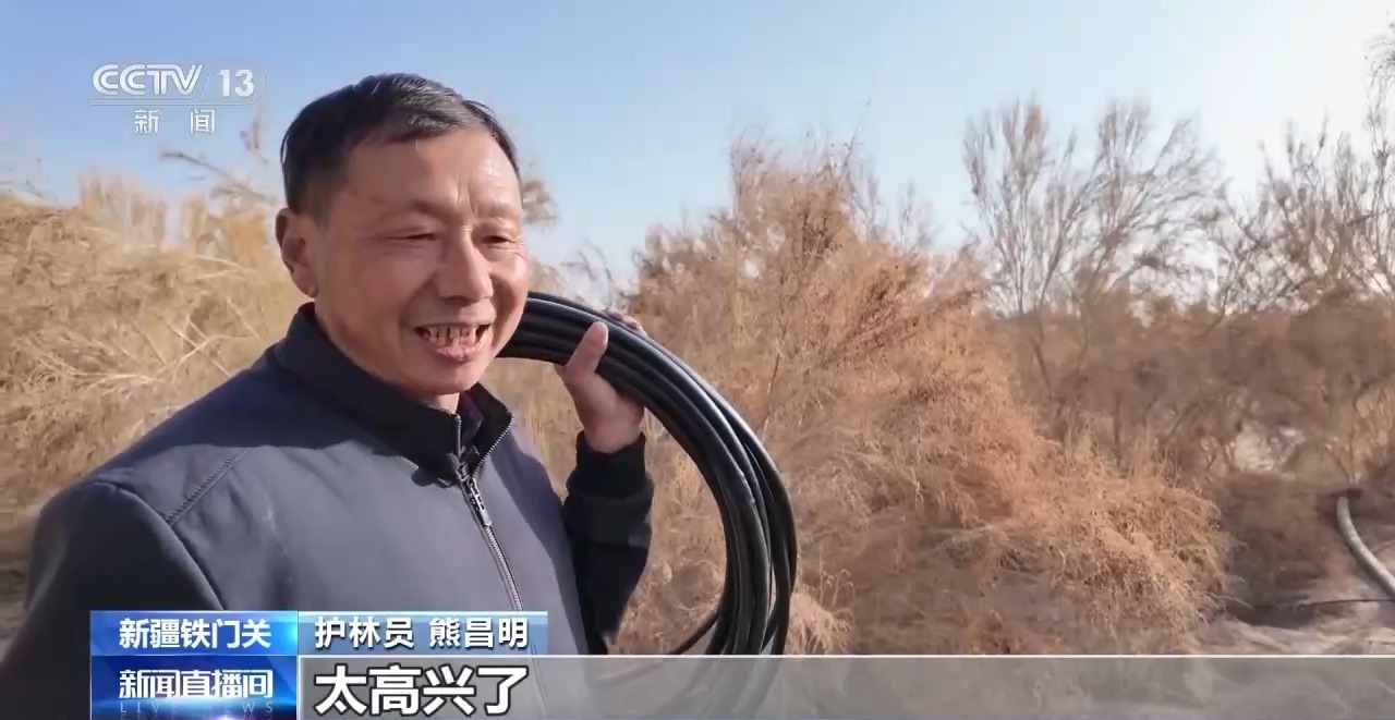 眼下这个季节,正是冬季巡林最忙碌的时候,新疆铁门关市营盘镇53岁的护林员熊昌明,每天早晨都会和同事在泵房会合,一起去检修梭梭林里的滴灌带。
