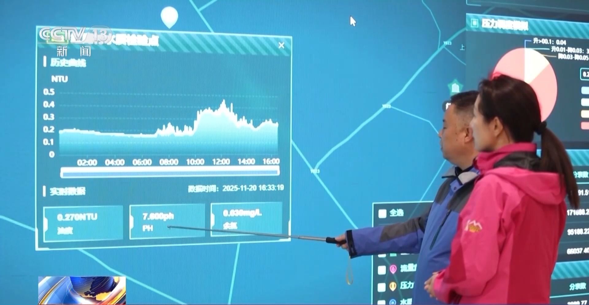 湖南省郴州市嘉禾县自来水有限公司党总支书记 李东:我们从水厂到用户都安装了24小时水质检测仪,通过对余氯、浊度、pH值这三项24小时进行检测,每5分钟上传一组数据。在管网上面安装了100多个压力点,能够实时动态监管水压是否正常,压力点如果出问题了就会报警,我们在半个小时之内会上门,在两个小时之内会处置到位。