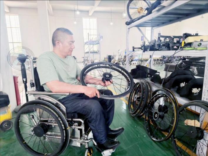 2006年,周志刚因意外高位截瘫。他自强进取,凭打工时学的机电知识,钻研改良轮椅。经反复试验,做出实用电动车头。2018年他注册公司,经过不断创新,公司拥有全国首创的车头控制轮椅刹车等核心技术,“个性化轮椅”销往全国30多个省市,他也成了残疾人眼中的创业榜样。