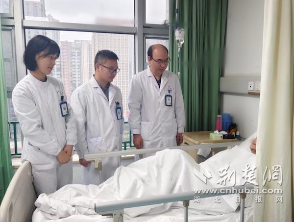 心脏大血管外科专家团队查看患者术后恢复情况。通讯员供图