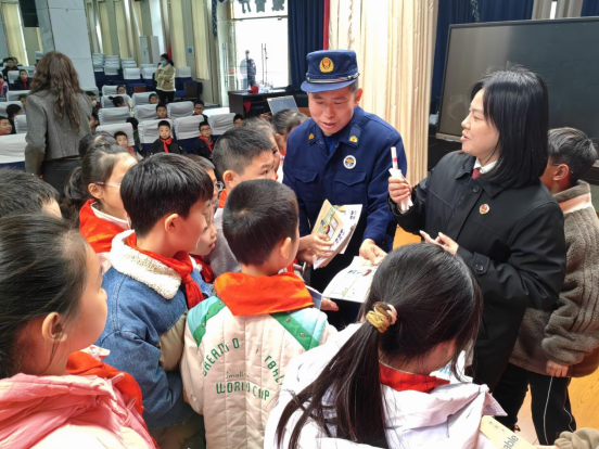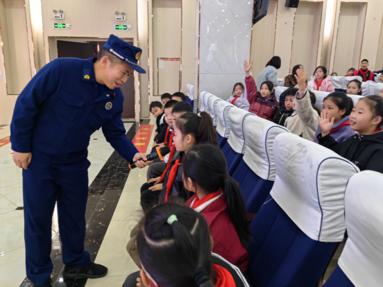 “如果家里油锅着火了,第一时间应该怎么办?”在随后的有奖问答环节,消防宣讲员的问题一抛出,教室里立刻举起一片小手。“盖上锅盖!”“不能用水泼!”孩子们争先恐后地回答问题,正确的同学不仅获得了热烈的掌声,还收到了消防员发的精美小礼品和消防安全知识手册。