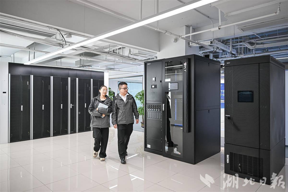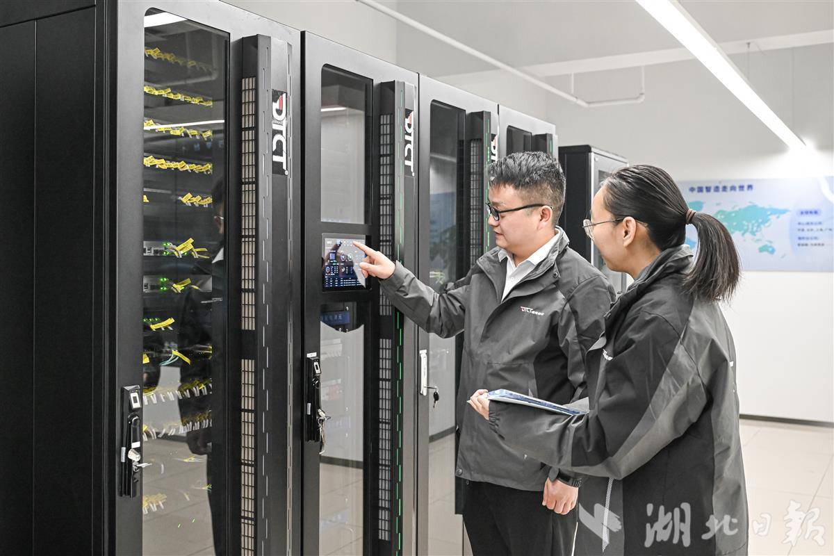 12月1日,位于武汉人工智能大厦的德塔森特(武汉)数据科技有限公司的技术人员正在巡护设备。不久前,知名数据企业德塔森特落子武汉。