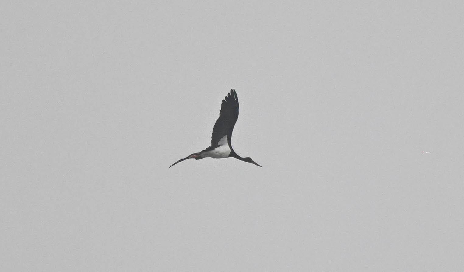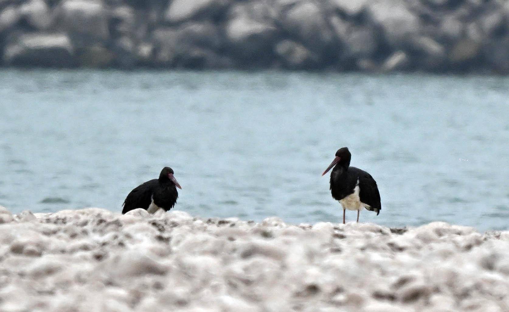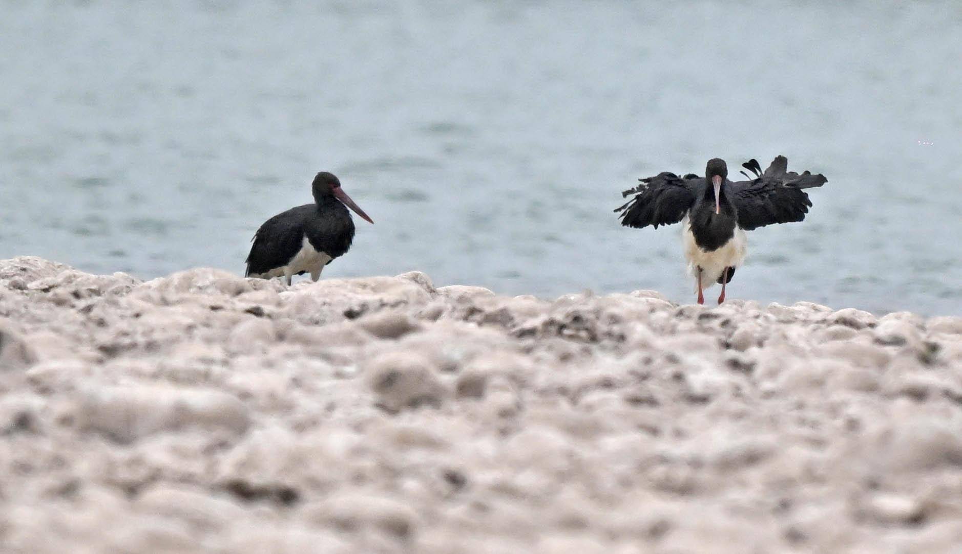 12月2日,记者在枝江市顾家店镇关洲岛捕捉到国家一级重点保护野生动物黑鹳的身影,鸟群伸展着修长的羽翼在浅滩踱步,不时低头啄食,与远处成群的候鸟相映成趣。