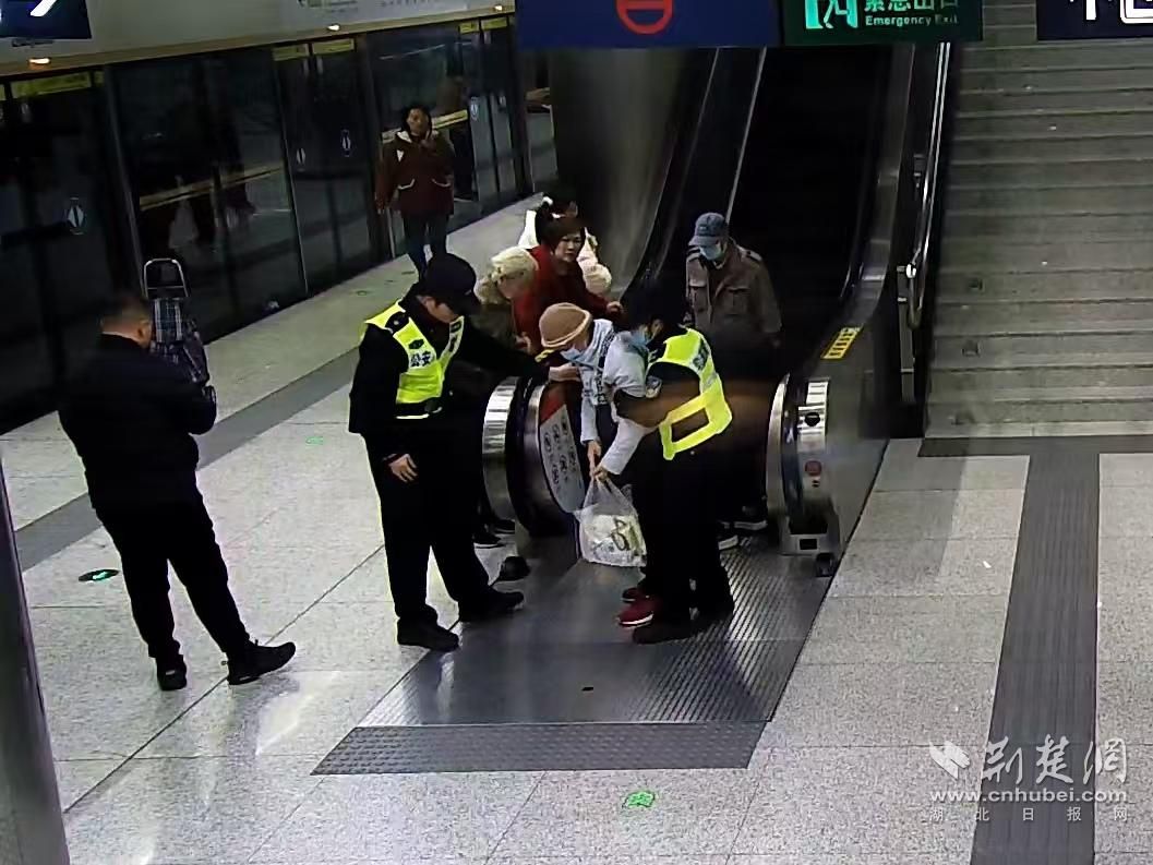 荆楚网(湖北日报网)讯(记者 白云 通讯员 张祖华 李文茂)12月2日,一名老人在地铁站乘坐扶梯时不慎摔倒。正在巡逻的两名辅警发现险情后默契配合,迅速按停扶梯,果断施救,避免更大的危险发生。