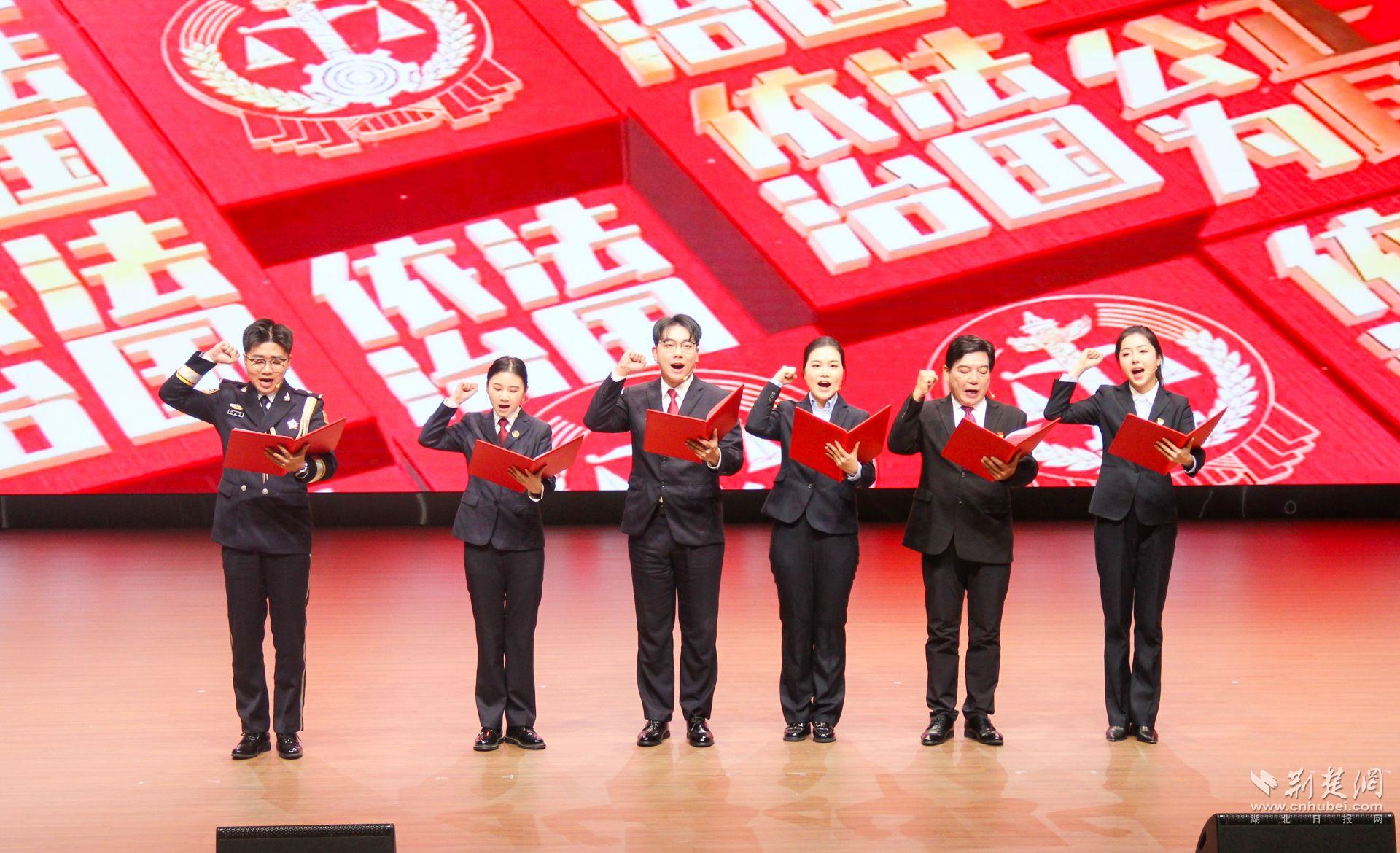 启动仪式现场举办了精彩的法治文艺汇演,来自武昌区相关政法单位、枝江市司法局董市司法所、武昌南湖街道华锦社区、湖北泓峰律师事务所的法律工作者们,通过诗朗诵、脱口秀、情景剧、主题演讲等群众喜闻乐见的形式,以实际行动凝聚法治共识、传递法治力量。参加演出的武昌区南湖街道华锦社区“老红帽”志愿队叶小琼说,作为“法律明白人”,把生活中的法律知识搬上舞台,希望吸引更多人参与其中,让宪法精神浸润社会生活的每一个角落。