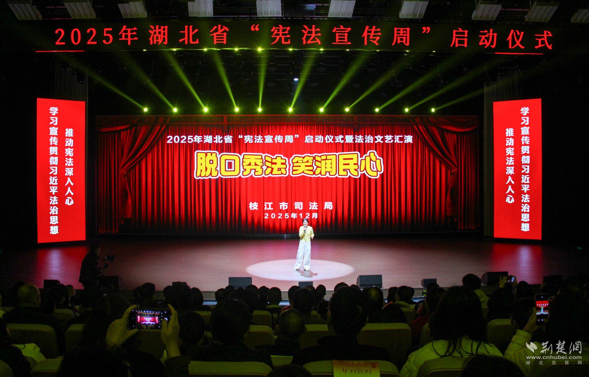 荆楚网(湖北日报网)讯(记者 邱玲鹏 周梦伊 通讯员 谈康睿)今年12月4日是第十二个国家宪法日。为全面贯彻党的二十大和二十届历次全会精神,深入学习宣传贯彻习近平法治思想和习近平总书记关于宪法的重要论述,12月2日,2025年湖北省“宪法宣传周”启动仪式在湖北日报传媒集团楚天演播厅举行。