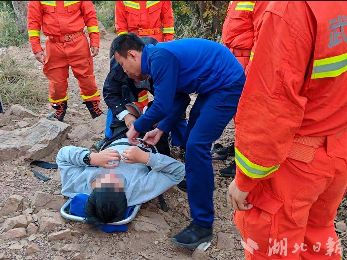 湖北日报讯(记者张竞恒、通讯员汉消)你知道武汉的喻家山吗?别看它只有不到150米,但是未经开发、地形复杂、暗藏风险。11月29日下午4点35分,一名13岁少年就在这座山上不慎摔伤膝盖,无法行动,情况紧急。接到报警后,武汉市消防救援指挥中心迅速调派磨山消防救援站,出动1辆消防车、7名消防员,火速赶赴现场展开救援。