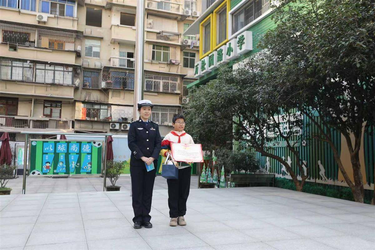湖北日报讯(记者张竞恒、通讯员廖慧、刘泽)12月1日,武汉市江汉区万松园路小学的升旗仪式后,一场特别的颁奖仪式引来全校关注。该校五年级学生赵元哲从江汉区交通大队民警黄怡静手中,接过了一份沉甸甸的“交通治理小参谋”荣誉证书,表彰他提交的一份关于校园周边路口改造的详细建议。这份建议被交警部门采纳并完成实地改造,真正守护了同学们的出行安全。