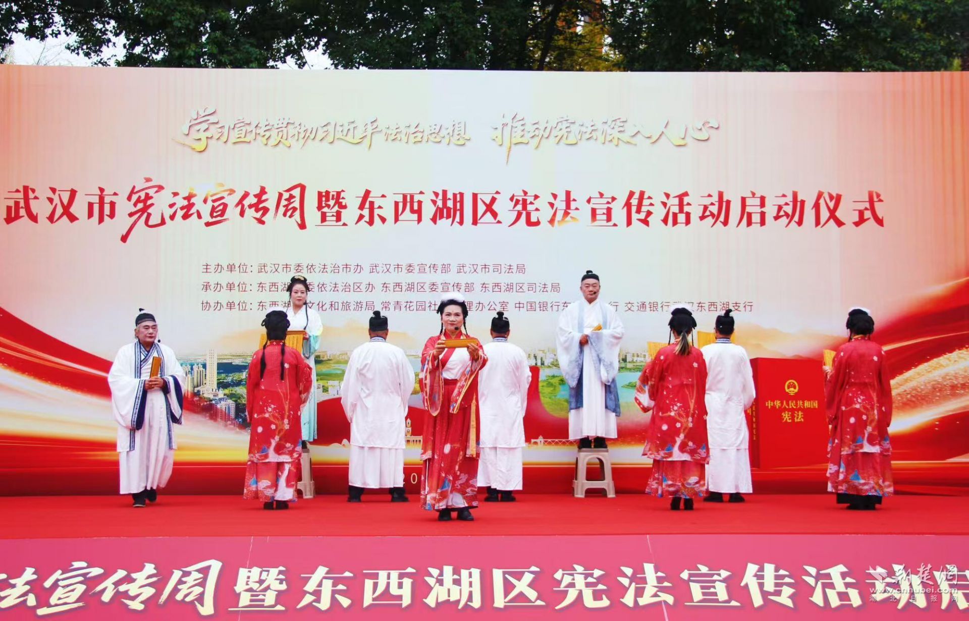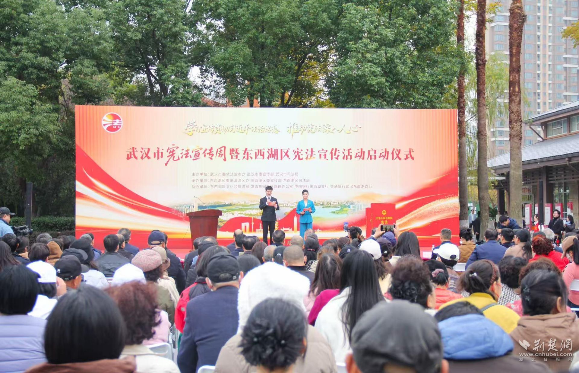 荆楚网(湖北日报网)讯(记者肖慧婷 通讯员吴静 罗晶洁)12月2日下午,武汉市“宪法宣传周”暨东西湖区宪法宣传活动启动仪式在常青花园国家安全主题园举行。