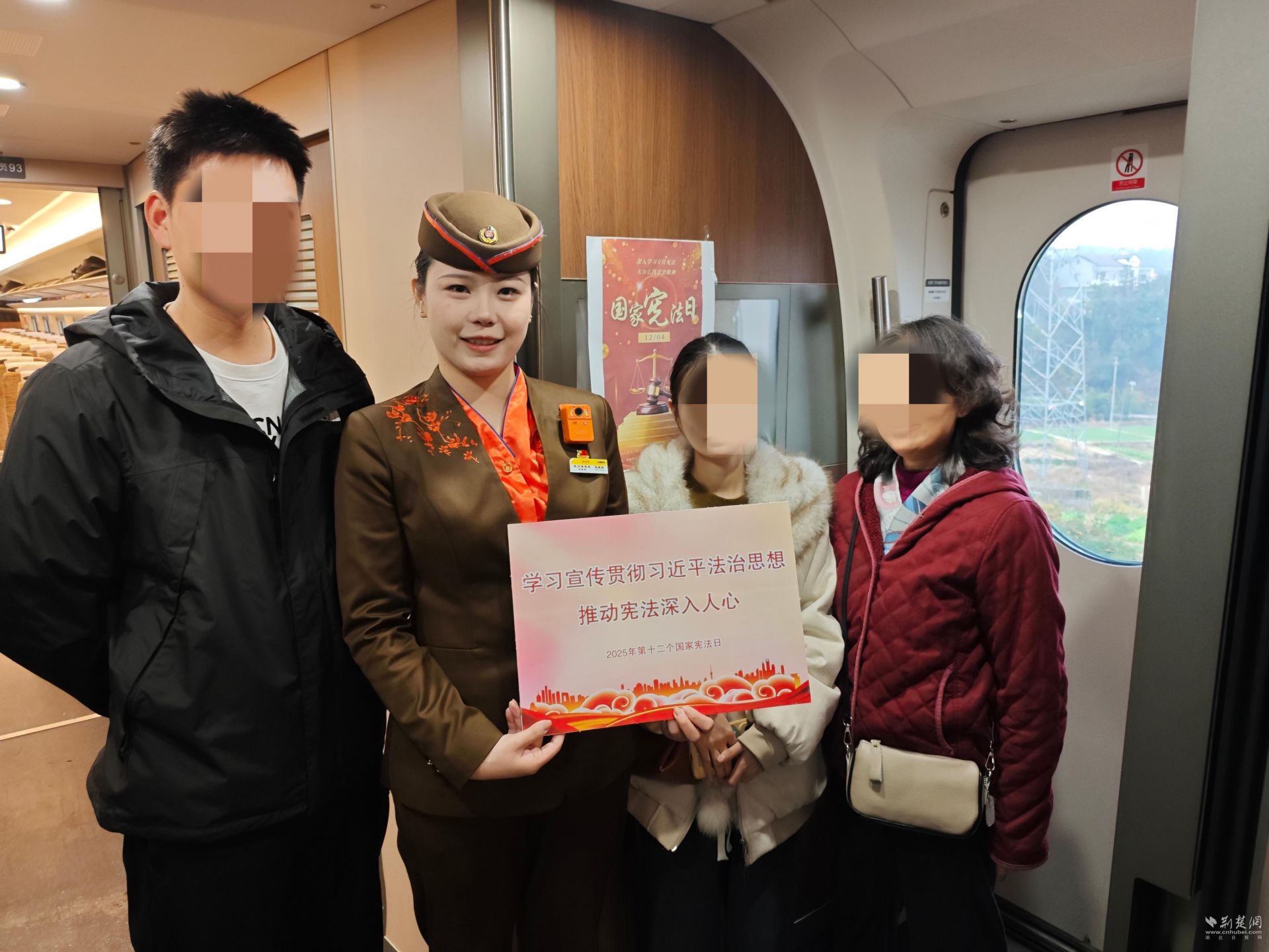 荆楚网(湖北日报网)讯(通讯员 宋阿东)为深入学习宣传宪法,弘扬宪法精神,在第十二个“12·4”国家宪法日来临之际,武汉客运段高铁乘务组由鄂州站开往深圳北站的G1020次列车化身普法课堂,今年“宪法宣传周”以“学习宣传贯彻习近平法治思想,推动宪法深入人心”为主题,让法治光芒随铁轨延伸,让尊宪崇法理念在旅途扎根。组织开展了一场别开生面的宪法宣传活动,让法治理念随着飞驰的列车走进每一位旅客心中。