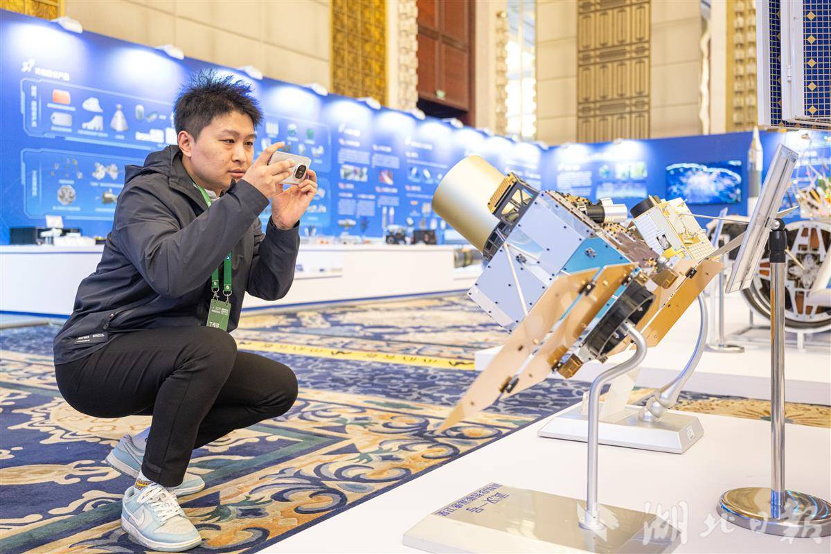 12月3日,一名嘉宾在“楚天”星座的模型前参观。(湖北日报全媒记者 任勇 摄)