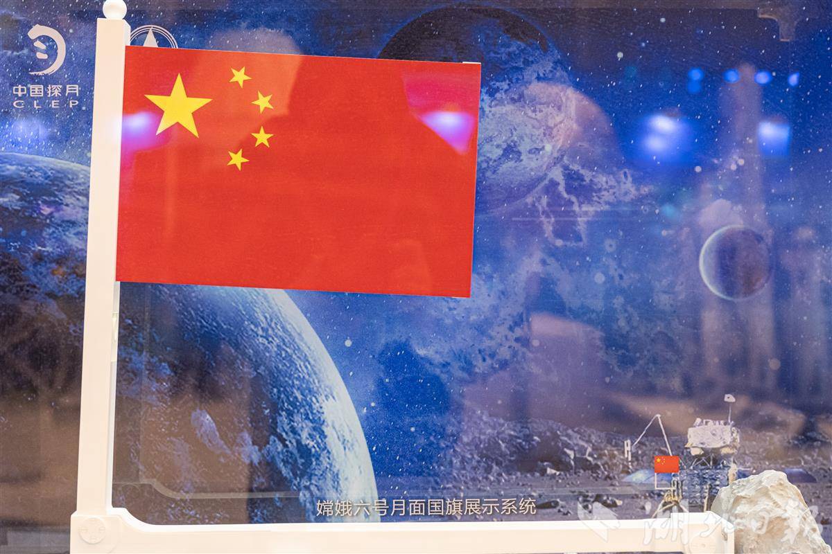12月3日,商业航天产业主题成果伴随展上展出的嫦娥六号月面国旗展示系统。(湖北日报全媒记者 任勇 摄)