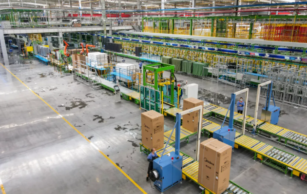 智能工厂,机械臂在数字化指令下精准“起舞”,每几秒就有一台符合全球绿色标准的冰箱下线;