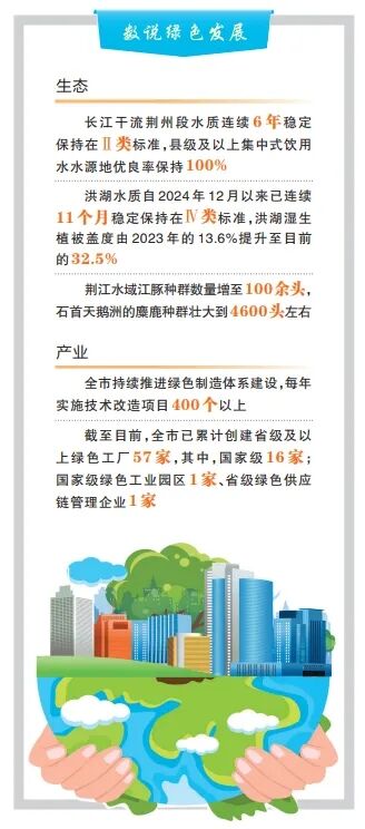 近年来,荆州将生态承载力作为发展的刚性底线,将绿色发展理念融入经济社会发展的全领域、全过程,坚持以提升发展的含金量、含新量、含绿量为重点,持续加快产业绿色转型升级。