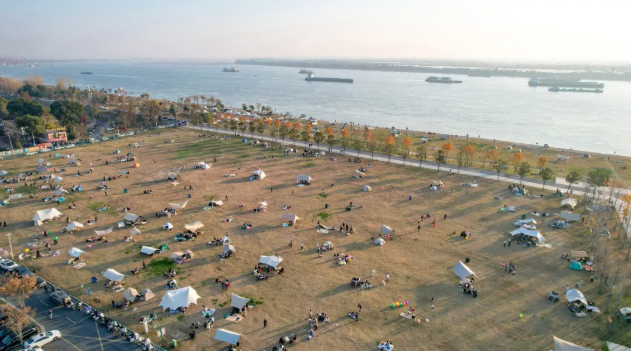 市民在沙市区柳林洲生态公园露营游玩 记者 肖琦 摄