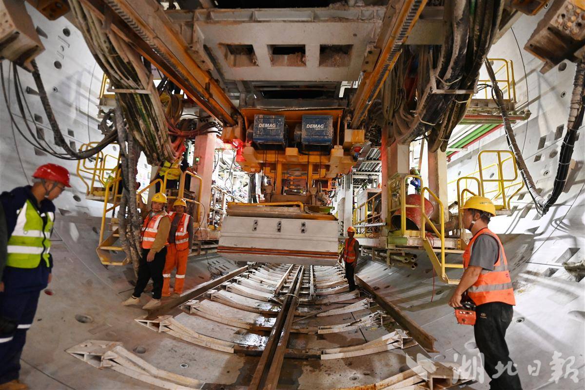 12月3日,在襄阳市谷城县五山镇的引江补汉工程输水隧洞,工人在掘进机内安装管片。